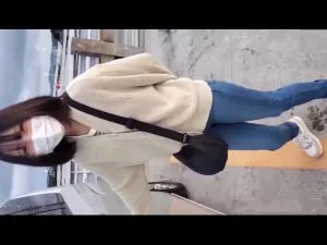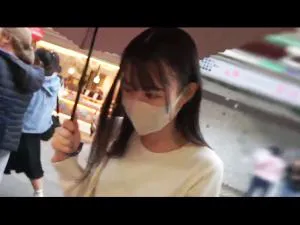 The filming of a slender girl who was beautiful when she removed her hand that hid her face from the camera,